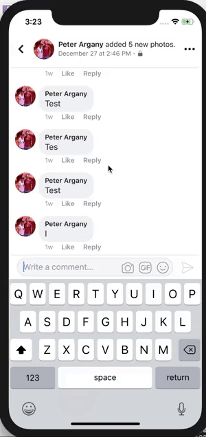 An initial idea for building this API involved listening to NSNotificationCenter for UIKeyboardWill(Show/Hide/ChangeFrame) events. This pattern is used in some open-sourced libraries, and internally in some parts of the Facebook app. Unfortunately, UIKeyboardDidChangeFrame events were not being called in time to update the <InputAccessoryView> frame on swipes. Also, changes in keyboard height are not captured by these events. This creates a class of bugs that manifest like this: